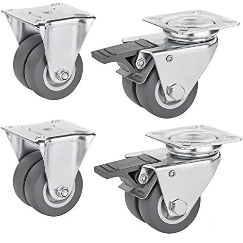 H&S Rullar för möbler – uppsättning om 4 – tysta, tunga gummimöbelhjul – hjul med broms, dubbla kullager-vridbara huvuden – transporthjul 50 mm små