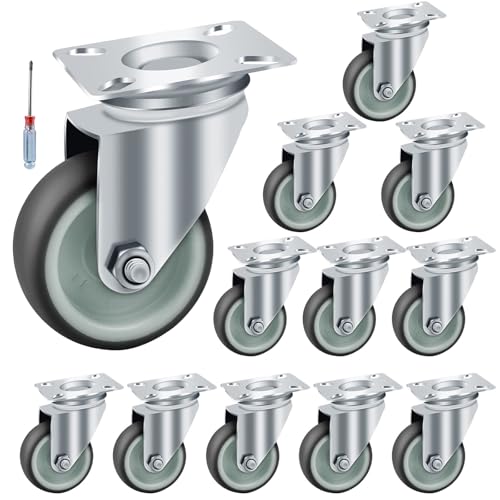 AMIGOB 12 stycken vridbara hjul, 50 mm tunga lasthjul, gummimöbelhjul, transporthjul med 48 skruvar, lastkapacitet 50 kg per hjul
