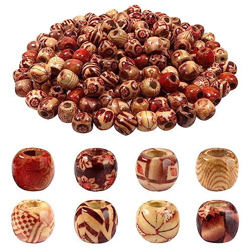 300 stycken träpärlor målade träpärlor med stort hål, naturliga träkulor pysselpärlor för att trä upp, olika mönster, pärlor, avståndspärlor, pärlor för gör-det-själv halsband, armband, hårsmycken