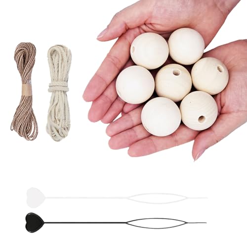 HXJDAM Stora träpärlor 30 mm, träkulor med hål, 40 stycken träpärlor för att trä upp, med vridna perforator. Naturliga runda obehandlade träpärlor för gör-det-själv-smycken, dekorationer, halsband