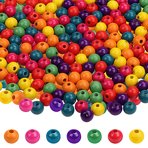 300 stycken träpärlor färgglada, 12 mm träkulor med hål för att trä på gör-det-själv armband smycken halsband barn hängen