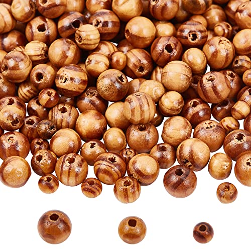 OLYCRAFT 900 st naturliga träpärlor färgade runda lösa träpärlor 3 stilar trä distanspärlor för hantverk tillverkning gör-det-själv smycken armband och halsband