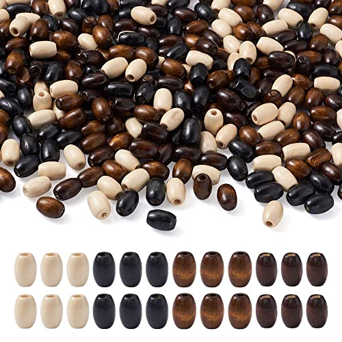Craftdady 800 st naturliga ovala lösa träpärlor, tunna, 4 färger, trärör, distanspärlor för smycken, hantverk, tillverkning av halsband, armband, örhängen, hål: 3 mm