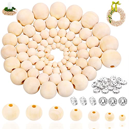 FEEIN Träpärlor 500 stycken, träpärlor för trädning naturliga träkulor med hål, 7 storlekar 20 mm, 16 mm, 14 mm, 12 mm, 10 mm, 8 mm, 6 mm träkulor för gör-det-själv kranarmband, halsband, hantverk och
