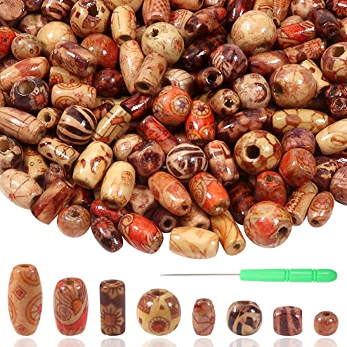 TOAOB 200 st tryckta flerfärgade träpärlor målade afrikanska träbollar mellanlägg 9 x 10 mm för gör-det-själv-dekoration smyckestillverkning halsband armband smycken och flätat hår