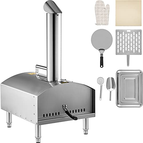 VEVOR Vedeldad ugn 30 cm, utomhus pizzaugn med vikbara ben, rostfritt stål pizzamaskin 12 ° C maxtemperatur, träpellets brinnande pizzaugn med tillbehör för utomhus, trädgård, gårdsmatlagning.