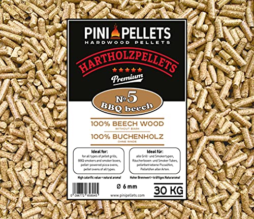 PINI Hårt träpellets 100 % bok stativ 5 BBQ Beech 30 kg grillpellets för grillning, rökning, uppvärmning