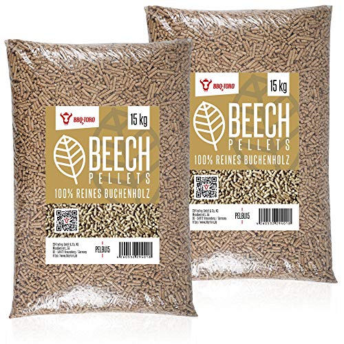 BBQ-Toro bokpellets av 100 % bokträ | 30 kg | BBQ träpellets för pizzaugn, grill, rökare och värmare | BBQ lövträpellets