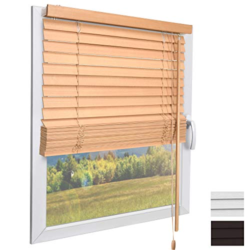 Sekey persienn träpersienn, 50 mm, trä, persienner, persienn, äkta trä, justerbar persienn 90 x 130 cm, naturträfärg