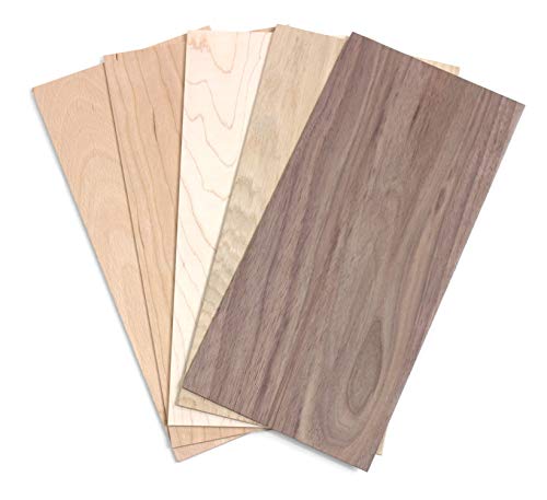 wodewa träfanérset 2 mm tjock fanér 5 trätyper 30 x 14 cm 5 set sågfanér pysselträplattor äkta trä träfanér för pyssel träplatta pysselset modellbygge gör-det-själv