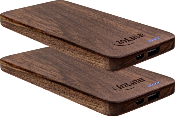 2 Inline® Träplatta, Usb Powerbank 5.000Mah, Med Led Statusdisplay, Äkta Trä