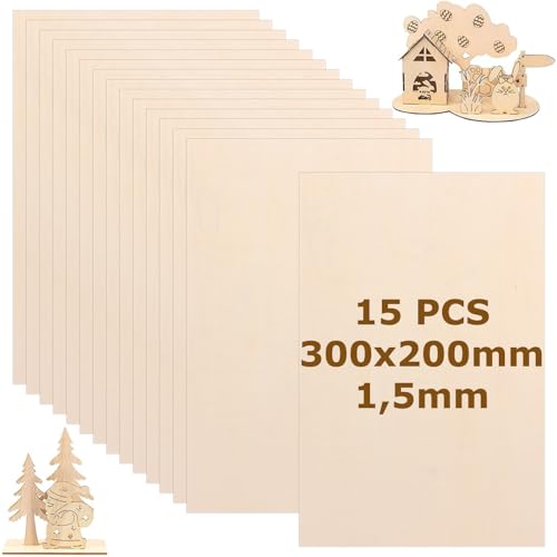 SHUESS 15 plywoodskiva 1,5 mm (300 x 200 mm) av lindträ – lindplywood, träplattor för pyssel, träplatta för pyssel, modellbygge och kreativa projekt