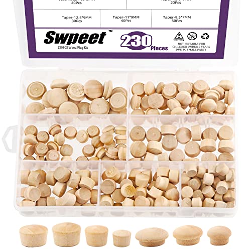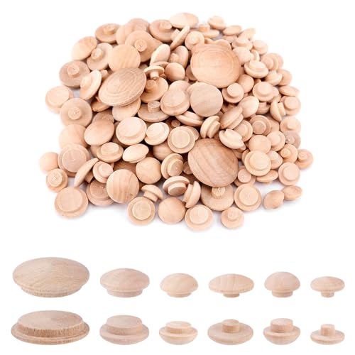 Swpeet 230 st 2 stilar 3/8 tum 7/16 tum 1/2 tum 17/32 tum 15/32 tum 19/32 tum träpluggar hålpluggar lönn knapp skruvskydd sortiment kit, spoltyp hålpluggar