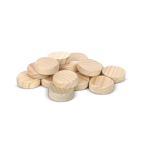Tolux Runda träpluggar 25 mm, Träskruvlock, trähattar för tätning av knut, borrhål och träfel. Storlek 25 x 9 mm, 25 st