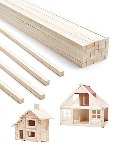 Anvin 50 stycken Balsa träpinnar fyrkantiga träpluggar oavslutade träremsor naturliga långa trähantverkspinnar batonger för gör-det-själv-hantverk modelltillverkning (6 x 6 x 300 mm)