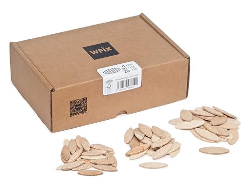 Platta pluggar från WFix | Storlek 0/10/20 vardera 200 st. | pluggar av massiv bok | Kompatibel med pluggfräs och lamellfräs | Träpluggar som lamello