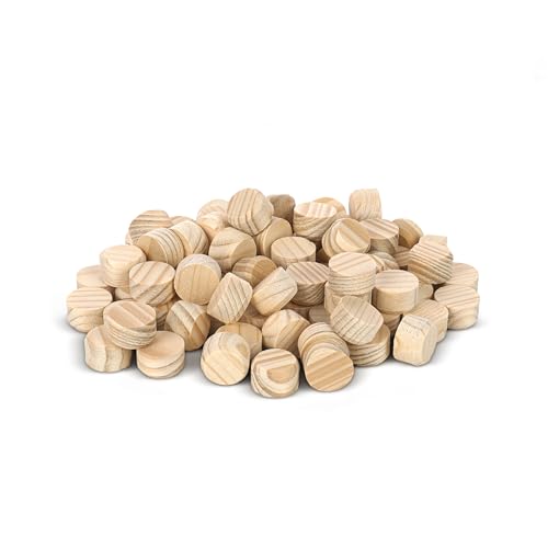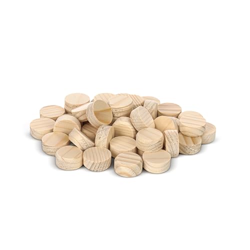 Tolux Runda träpluggar 15 mm, Träskruvlock, trähattar för tätning av knut, borrhål och träfel. Storlek 15 x 9 mm, 80 st