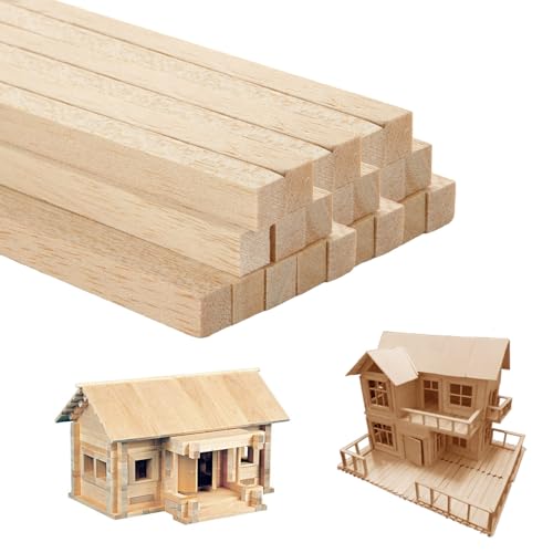 AHAQU 50 st Balsa-träpinnar, 10 x 10 x 300 mm fyrkantiga träpluggar, naturliga obehandlade träremsor för trähantverk, gör-det-själv-projekt, modelltillverkning, konst