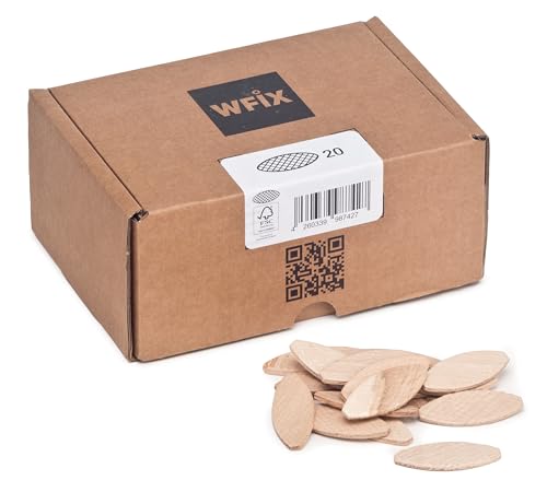 WFix Platta pluggar från storlek | 250 stycken pluggar av massiv bok i robust kartong | Kompatibel med pluggfräs och lamellofräs | träpluggar som lamello, Grösse 20 / 250Stk