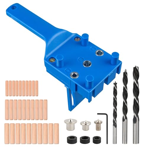 41 st plugg jigg kit med borrstyrblock, 6/8/10 mm handhållen plugg jigg, träbearbetningsjigg, borrjigg med borrkronor och träpluggar, blå