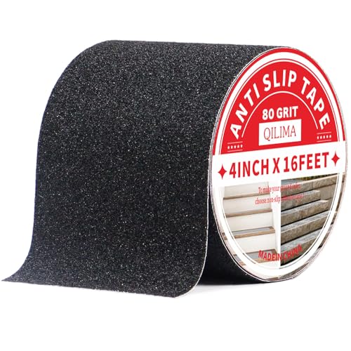 QILIMA halkfri tejp, remsor med självhäftande, 10 cm x 5 m trappa trappsteg, självhäftande tejp, hög dragdyna för golvbeläggning inomhus och utomhus, svart