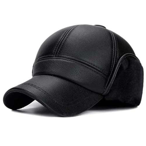 Trapper Hat Men Waterproof Winter Hat Warm PU Leather Aviator Cap with Ear Flaps Baseball Cap Hunting Ski Hat