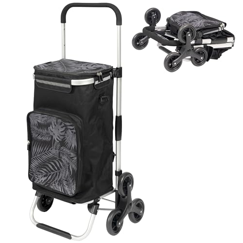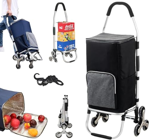 Shoppingvagn, hopfällbar shoppingvagn, med trappklättrare, med kylfack, avtagbar väska, vattentät, max lastkapacitet 75 kg,Black