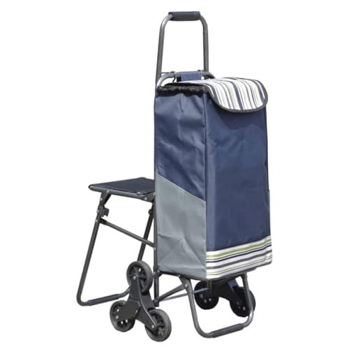 Shoppingvagn Hopfällbar shoppingvagn med sits Kraftig trappklättrare kundvagn på hjul För matvaror Tvätt Resetrappvagn Kundvagn(A)