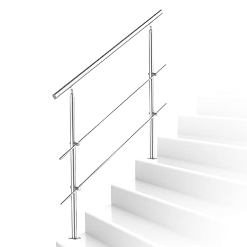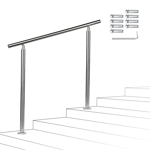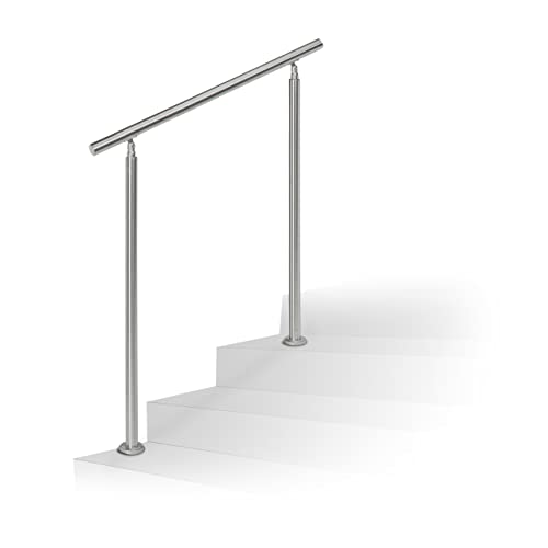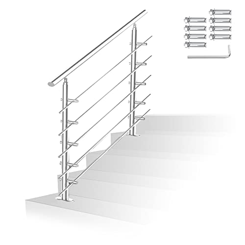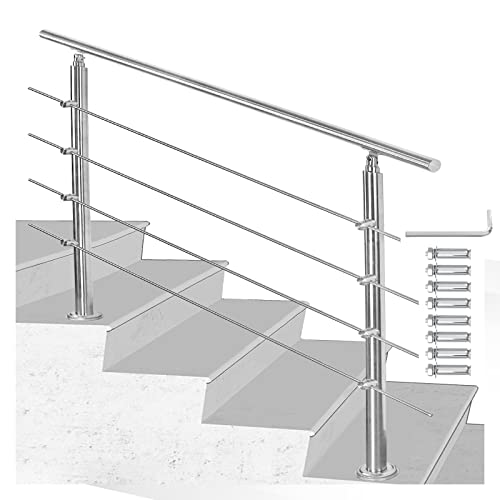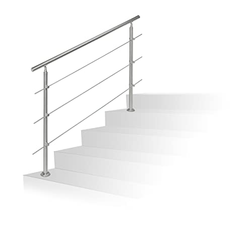 Joparri räcke rostfritt stål ledstång trappräcke – 150 cm 4 tvärstag – inomhus och utomhus för trappor rustning balkong – 201 rostfritt stål slätt med tillbehör och instruktioner