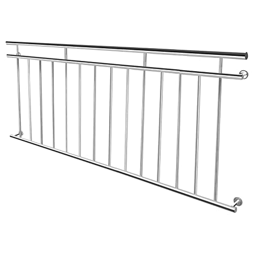 UISEBRT Fransk balkong, rostfritt stål, fönsterräcke, utomhus, trappräcke, balkongräcke, räcke, terrassräcke (184 x 90 cm)