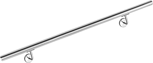 XMTECH XM-( HAG7508H) Ledstång i rostfritt stål, trappräcke/räcke, väggledstång, vägg, trappa för utomhus och inomhus, med väggfästen och monteringsmaterial, längd : 180 cm, silver
