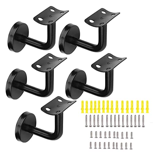 KMERCE 5 st svarta trappledstångsstöd, trappräcke i rostfritt stål, 60 x 80 mm, med skruvar, för inomhus och utomhus trappräcken
