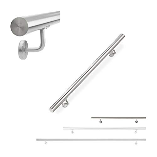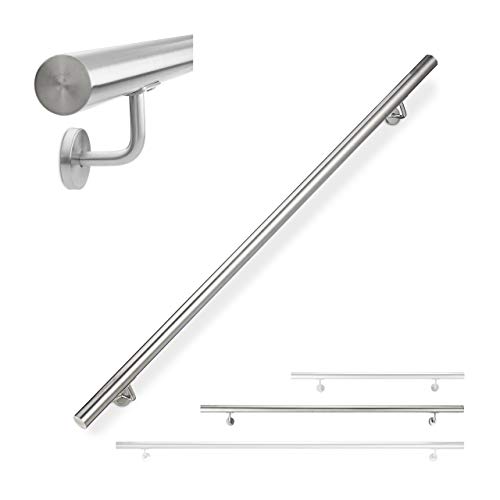 Ikodm Ledstång i rostfritt stål trappräcke väggledstång vägg trappa 180 cm Ø 42 mm för utomhus- och inomhusbruk med väggfästen, monteringsmaterial