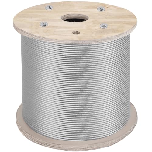 VEVOR Kabeldiameter 6,4 mm rostfritt stål konstruktion 7 x 19 längd 61 m, stålvajer flätad ihålig brotthållfasthet 2 900 kg för Balustrar Trappräcke Veranda Staket
