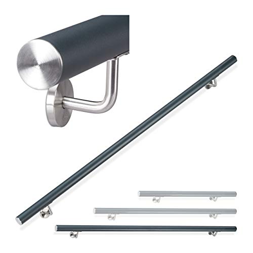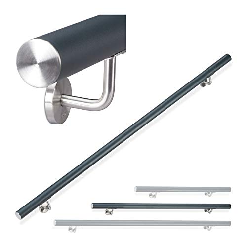 Relaxdays, antracit ledstång aluminium, rund, trappräcke inomhus och utomhus, matt, 150 cm, Ø 42 mm, med väggfäste, rostfritt stål, 1 500 mm