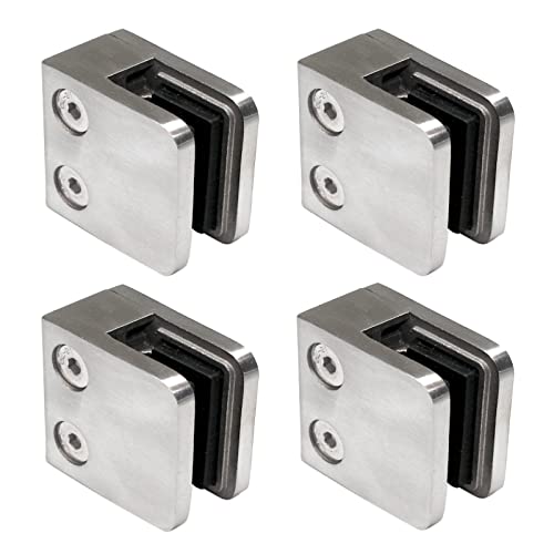 PRIOstål glashållare glasklämmor avståndshållare klämhållare - 4 stycken 45 x 45 x 26 mm Anslutning: Platt för glas 8 mm glasklämma hållare glasplatthållare för räcken, trappräcke av rostfritt stål