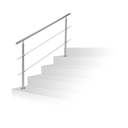 CAVATINY Ledstång i rostfritt stål för trappor räcke balkong med 3 tvärstag – inomhus och utomhus ledstång räcke trappräcke rostfritt stål räcke balkong (150 cm, 3 tvärstag)