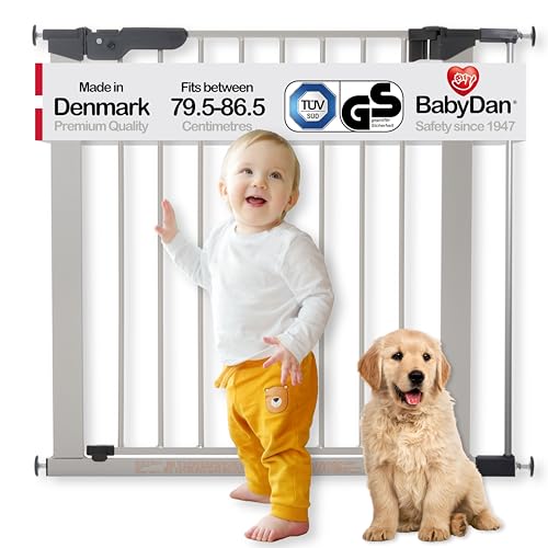 BabyDan Premier Dörrskyddsgaller/trappskydd för klämning, 79,6 – 86,5 cm – tillverkad i Danmark och testad av TÜV GS, färg: silver/svart