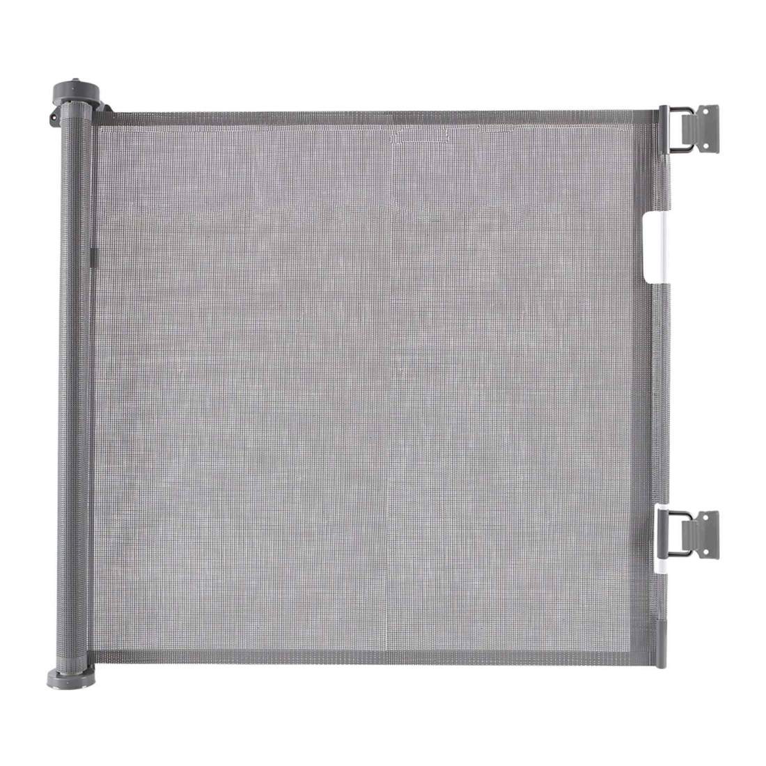 NAIZY Dörrskyddsrullgardin 0-180 cm Trappskyddsrullgardin Hunddörr och Barn Trappskydd Utdragbar Dörr Utbytbara Hundleksaker för Inomhus och Utomhus - Grå