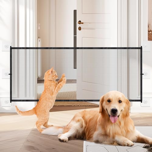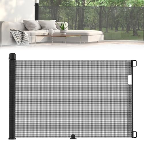 NAIZY Dörrskyddsrullgardin 0-150 cm Trappskyddsrullgardin Hunddörr och Barn Trappskydd Utdragbar Dörr Utbytbara Hundleksaker för Inomhus och Utomhus - Svart