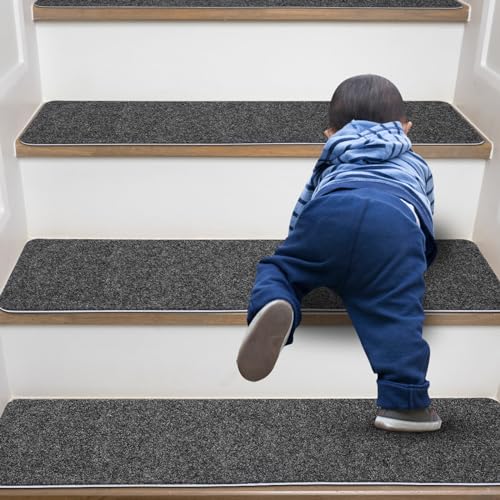Haitiahote Stegmattor, 15 stycken halkfria trappor för trästeg, trappskydd, trappmatta, inomhus, för barn, äldre och hundar, trappstegsmattor, halkfri matta (mörkgrå)