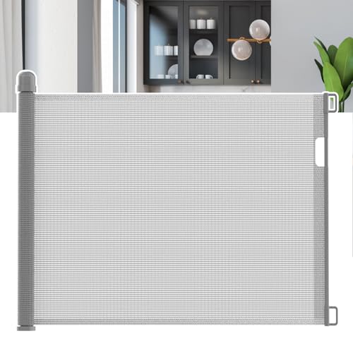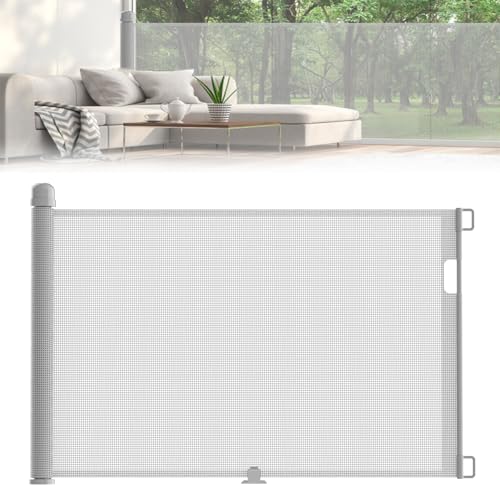 NAIZY Trappskydd Rullgardin Utdragbart 0-150 cm Stängsel 87 cm Högt Grå Trappsäkerhetsrullgardin Barnsäkerhetsrullgardin Lämplig för Trappor/Dörrar Inomhus & Utomhus