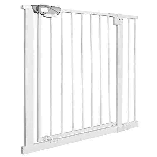 UISEBRT Dörrskyddsgaller utan borrning, trappskydd för barn 75–85 cm brett, bil-stängande babyskyddsgaller metallgaller, vitt