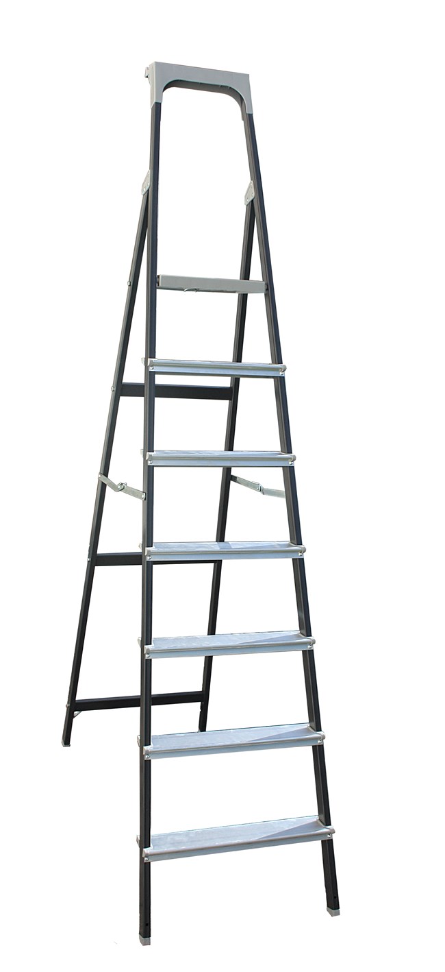 DRABEST - trappstege - med 7 steg - kan belastas med upp till 125 kg - 2,19 m lång - arbetshöjd 3,46 m - trappstege, bockstege av stål pulverlackerad - för hushåll, målningsarbete - grå