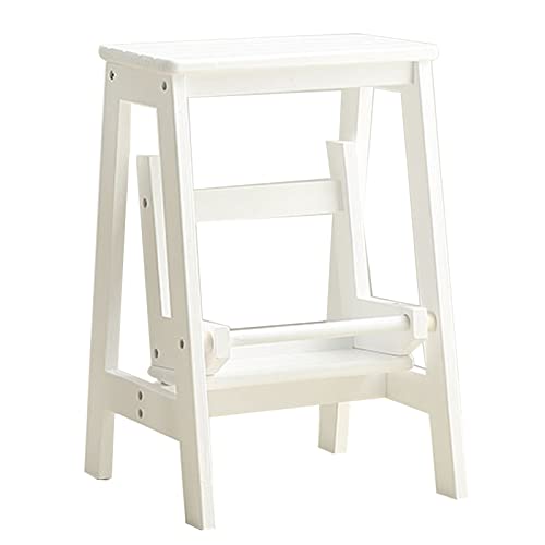NMDCDH Stegpall med 2 stegstegsteg, trappstol, trä, stora steg, stege, multifunktion, vikbar, kök, steg, säkerhet, halkfri, slitbana/blomställ, vit