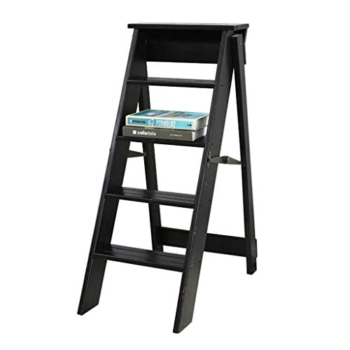 ZHZ-DT Trästege stol ställning stegpall för vuxna multifunktion hem kök dubbel användning hopfällbar trappstol flyttbar 5 steg stege stigande pall, svart (färg: svart)
