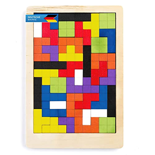 EACHHAHA Tangram Geometriska former för barn Träpussel - Montessori-leksakspussel med 155 geometriska former och 24 designkort Lämpliga för 3 4 5 6 7-åriga barn Pedagogisk leksak med