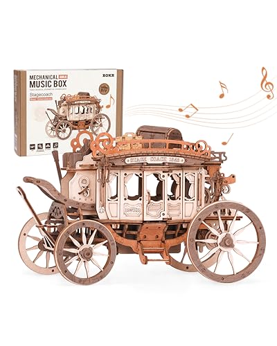 ROKR 3D-trämodellsatser för vuxna, mekanisk musiklåda, scenarionmodellbyggsatser, träpussel, födelsedagspresenter för barn och vuxna, Stagecoach AMKA1
