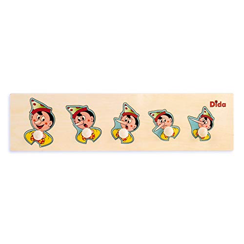 Dida - Pinocchio-seriering. Träpussel för barn, med förregling av vävsekvens med bekväma träknoppar.