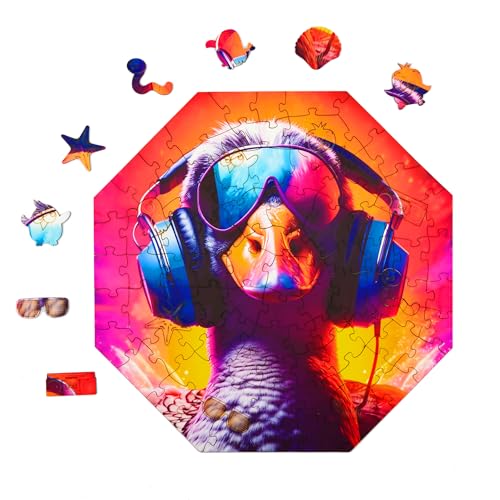 Milliwood Funny Jigsaw Puzzle för hela familjen - Funnymals Series - trästicksågar med en unik bild - träpussel för barn - Techno Goose 34x34cm – 90 bitar